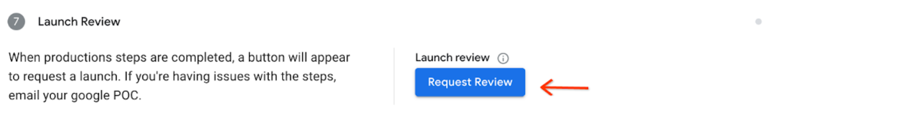 Once your integration passes the Production Review, you will receive a notification that Google is proceeding with the launch. integration.