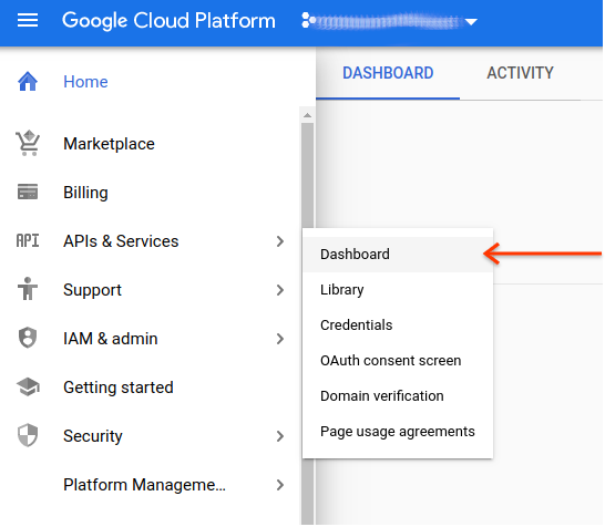 - Kliknij Interfejsy API i usługi > Panel.