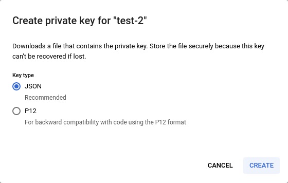 Create a service account with appropriate roles and save the generated JSON credentials securely.