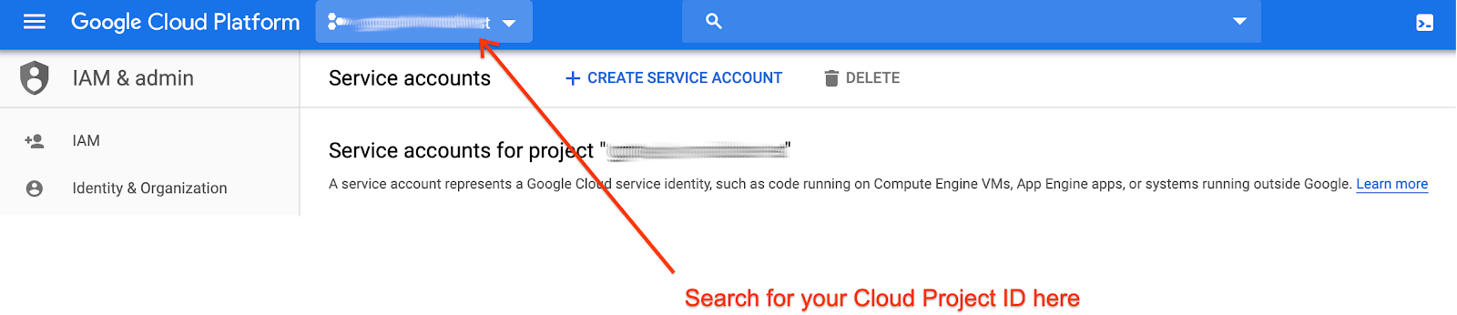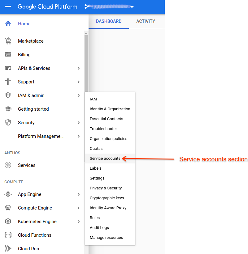 - Перейдите в IAM и администратор > Учетные записи служб .