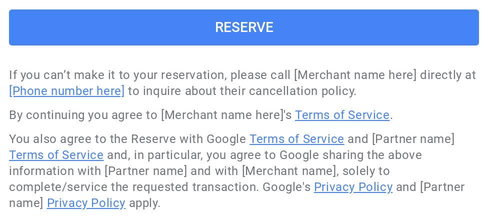 آدرس اینترنتی از پایین صفحه ایجاد رزرو به آن پیوند داده می شود و همیشه از متن شرایط خدمات استفاده می کند (این متن قابل تغییر نیست).