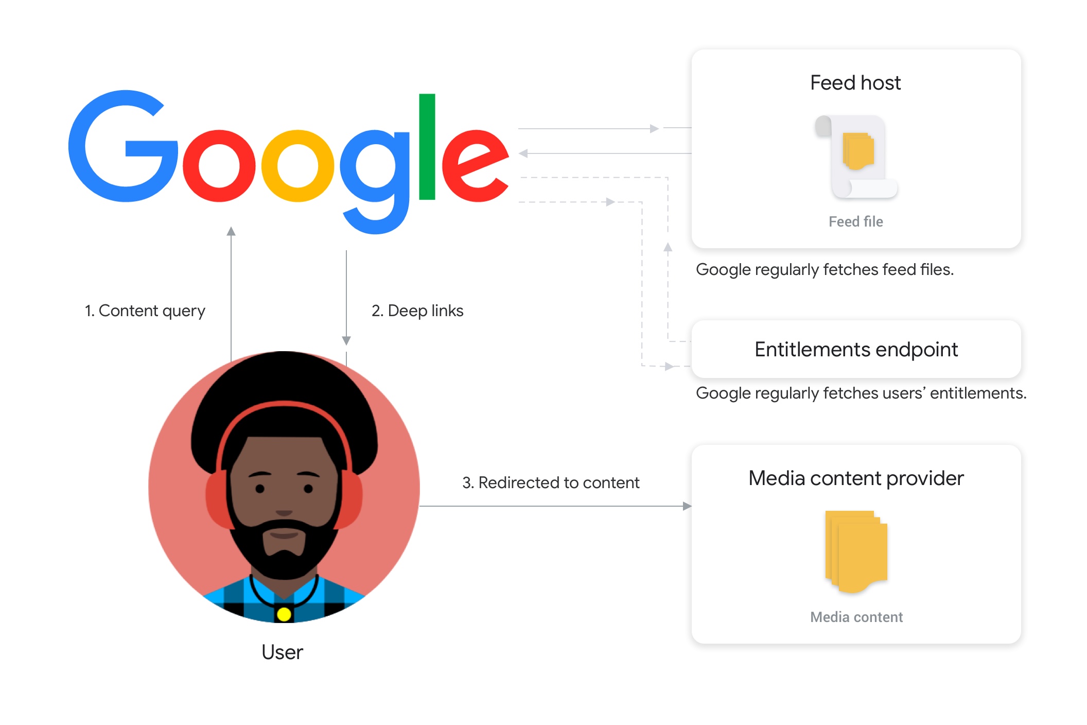 Фиды Media Actions позволяют описывать ваш медиаконтент Google. Это позволяет пользователям находить ваш контент в Google Поиске и Google Assistant и инициировать воспроизведение контента непосредственно в вашем приложении или на платформе.