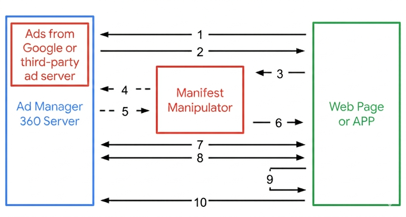 - O manifesto de veiculação de conjunto permite recuperar o manifesto completo dos conjuntos de anúncios para implementar a inserção de anúncios do lado do servidor (SSAI). Para mais detalhes, consulte DAI guiada por servidor.