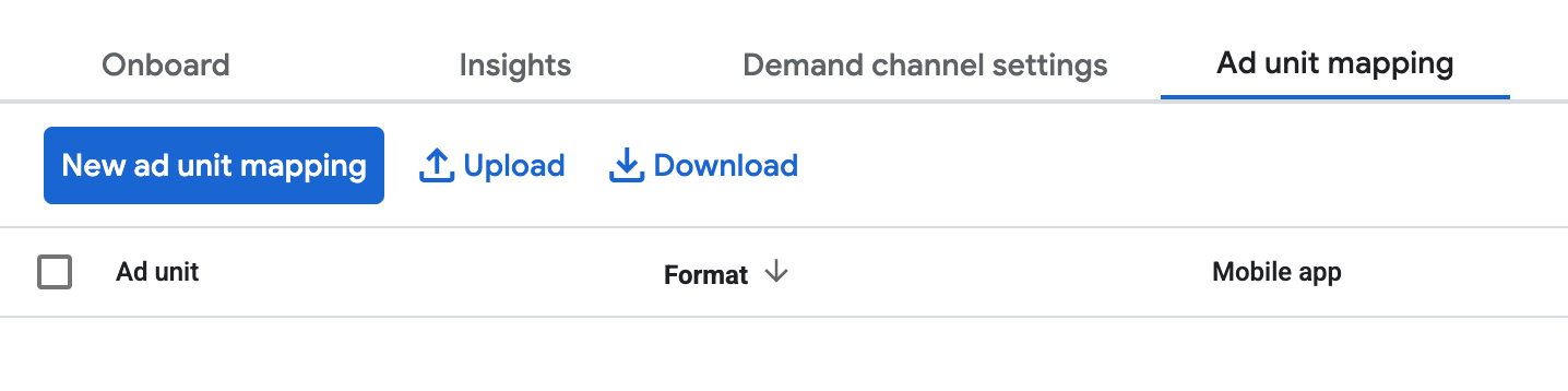 광고 단위 매핑 탭으로 이동하여 새 광고 단위 매핑을 클릭합니다.