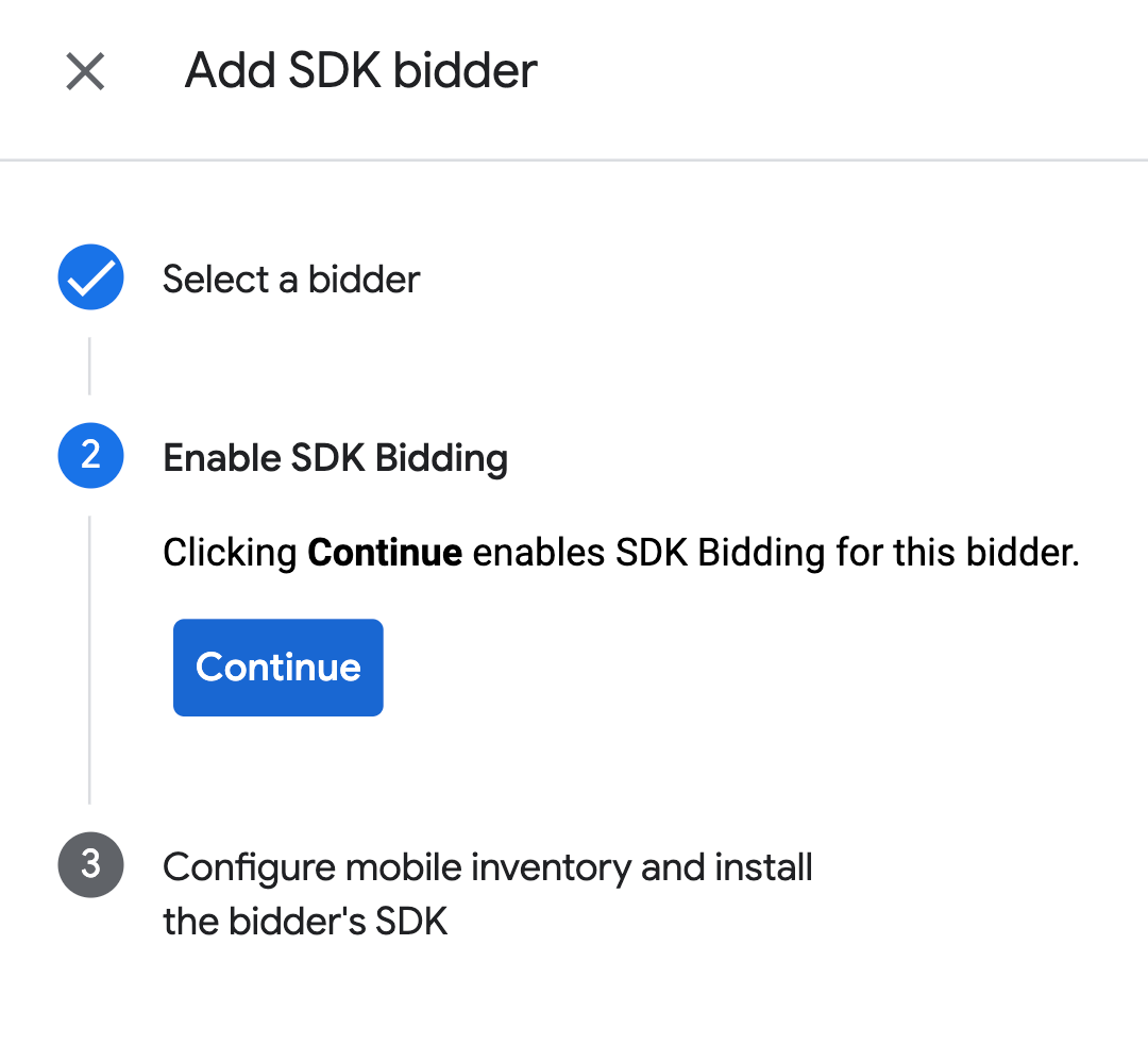انقر على متابعة لتفعيل SDK Bidding لمقدّم عرض السعر هذا.