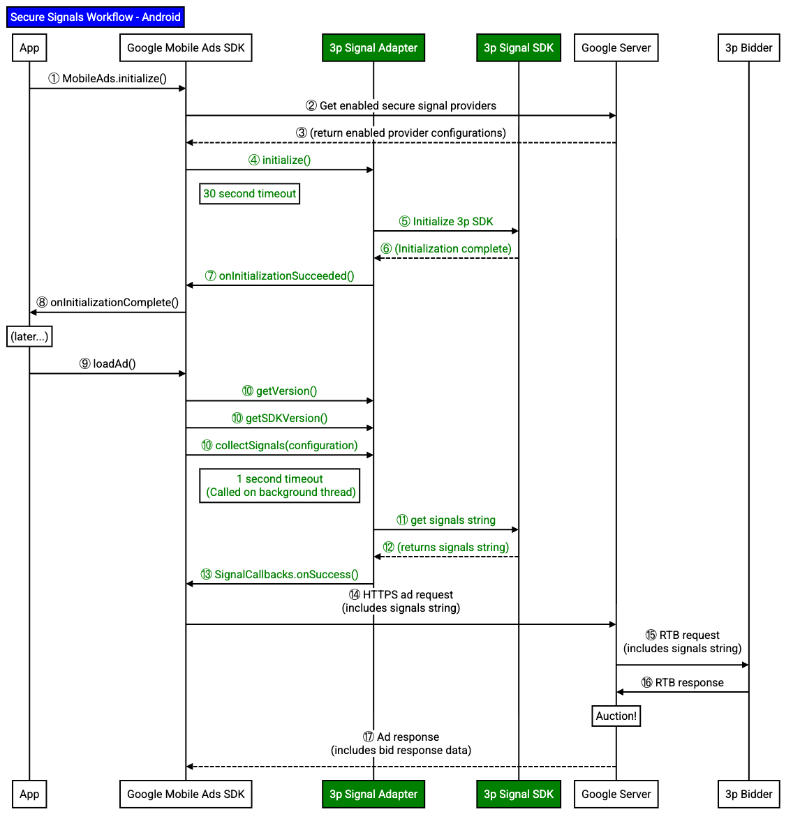 अगर आपका सिक्योर सिग्नल अडैप्टर वापस कॉल नहीं करता है, तो Google Mobile Ads SDK आपके सिक्योर सिग्नल अडैप्टर से सिग्नल इकट्ठा नहीं करता है.