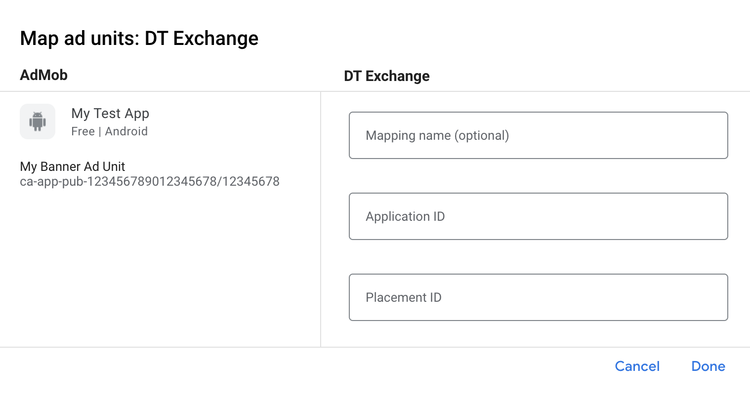 Bước 2: Thiết lập nhu cầu của DT Exchange trong giao diện người dùng AdMob