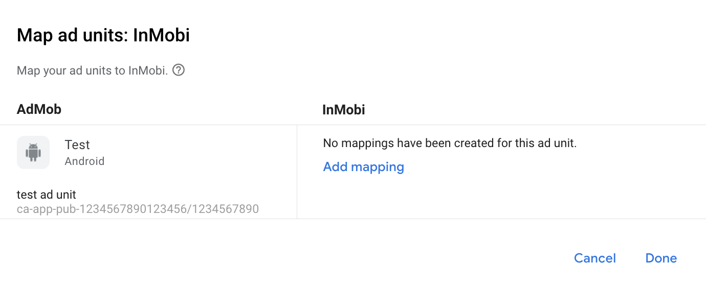 Si ya tienes una asignación para InMobi, puedes seleccionarla. De lo contrario, haz clic en Agregar asignación.