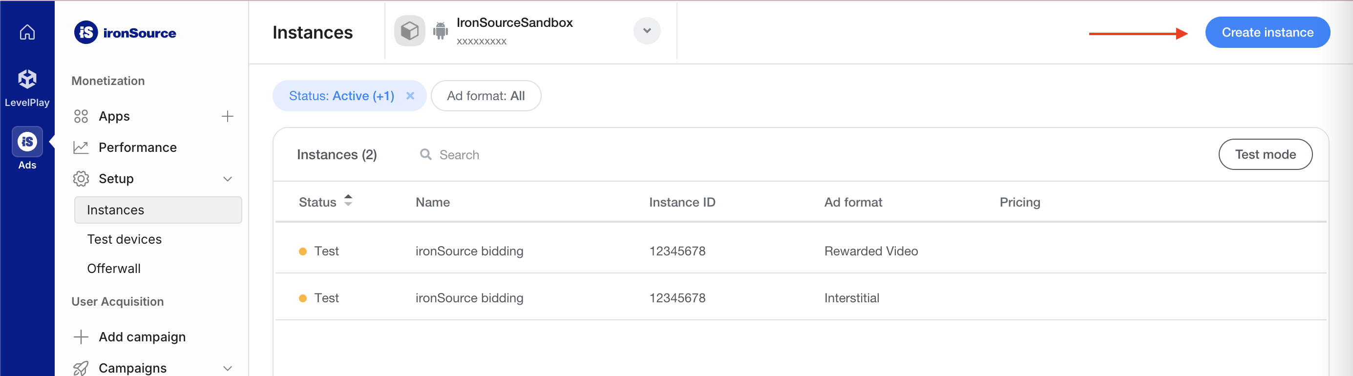 Folgen Sie der Anleitung im Leitfaden zum Integrationstesten von ironSource Ads, um Testanzeigen für ironSource Ads zu aktivieren.