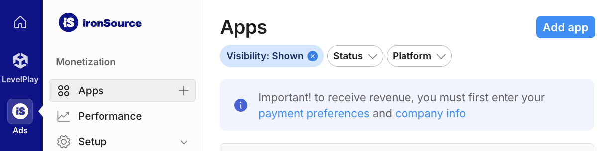 Registrieren Sie sich für ein ironSource Ads-Konto und melden Sie sich an.
