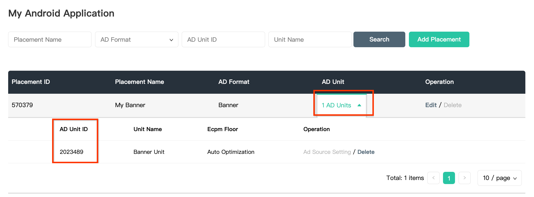 Once your ad placement is created, take note of the Placement ID.
