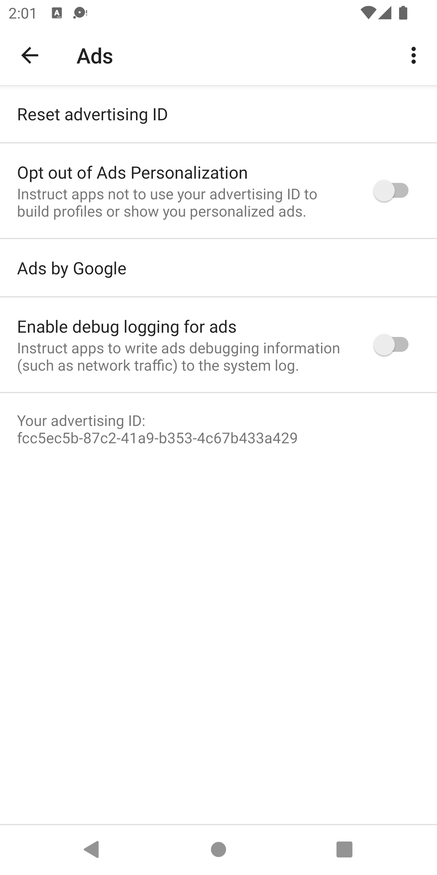Untuk mengaktifkan perekaman aktivitas jaringan, aktifkan opsi developer untuk perangkat Anda. Kemudian, luncurkan aplikasi Setelan Google dan pilih opsi Iklan: