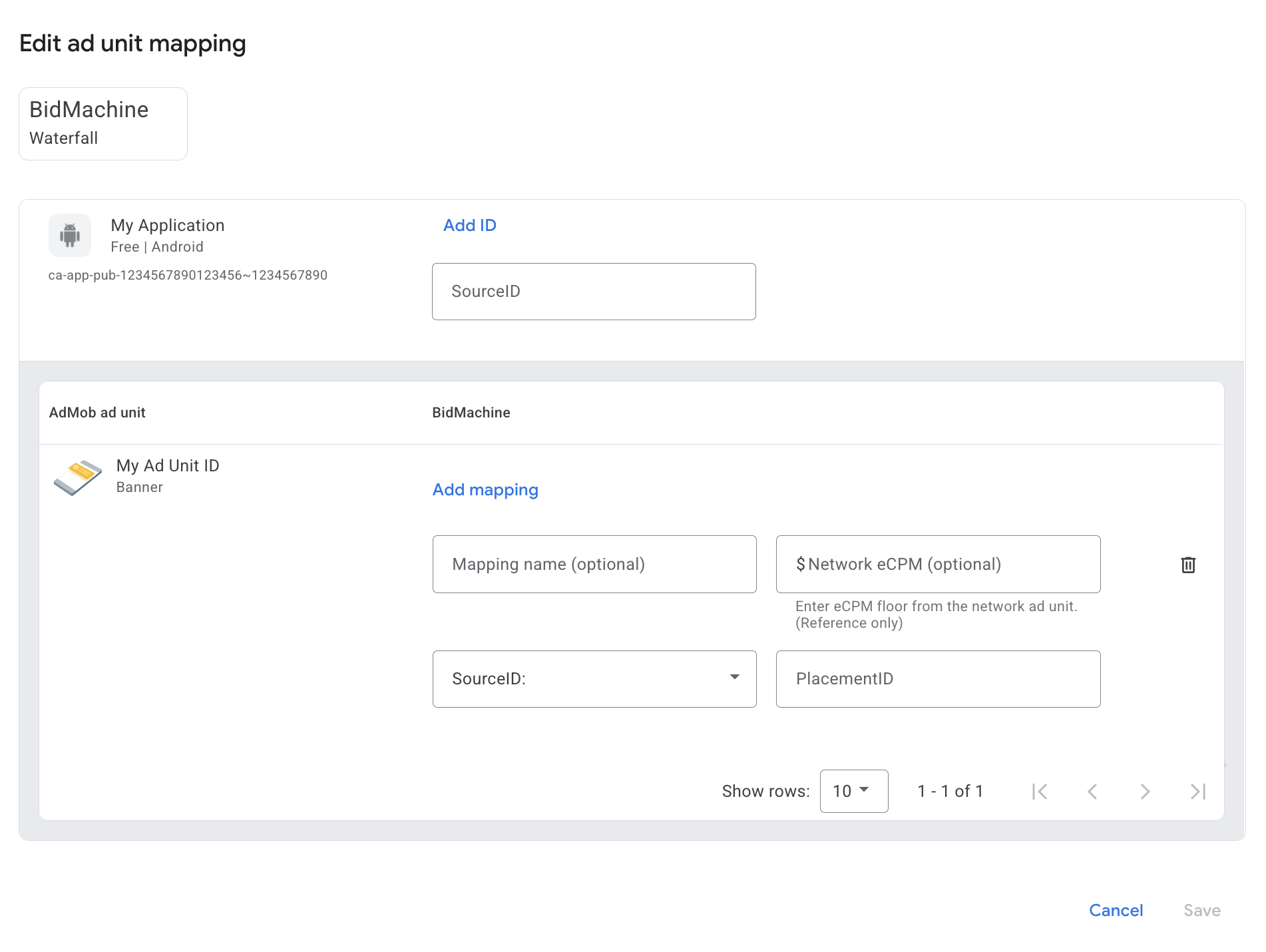 الخطوة 2: إعداد طلب BidMachine في واجهة مستخدم AdMob