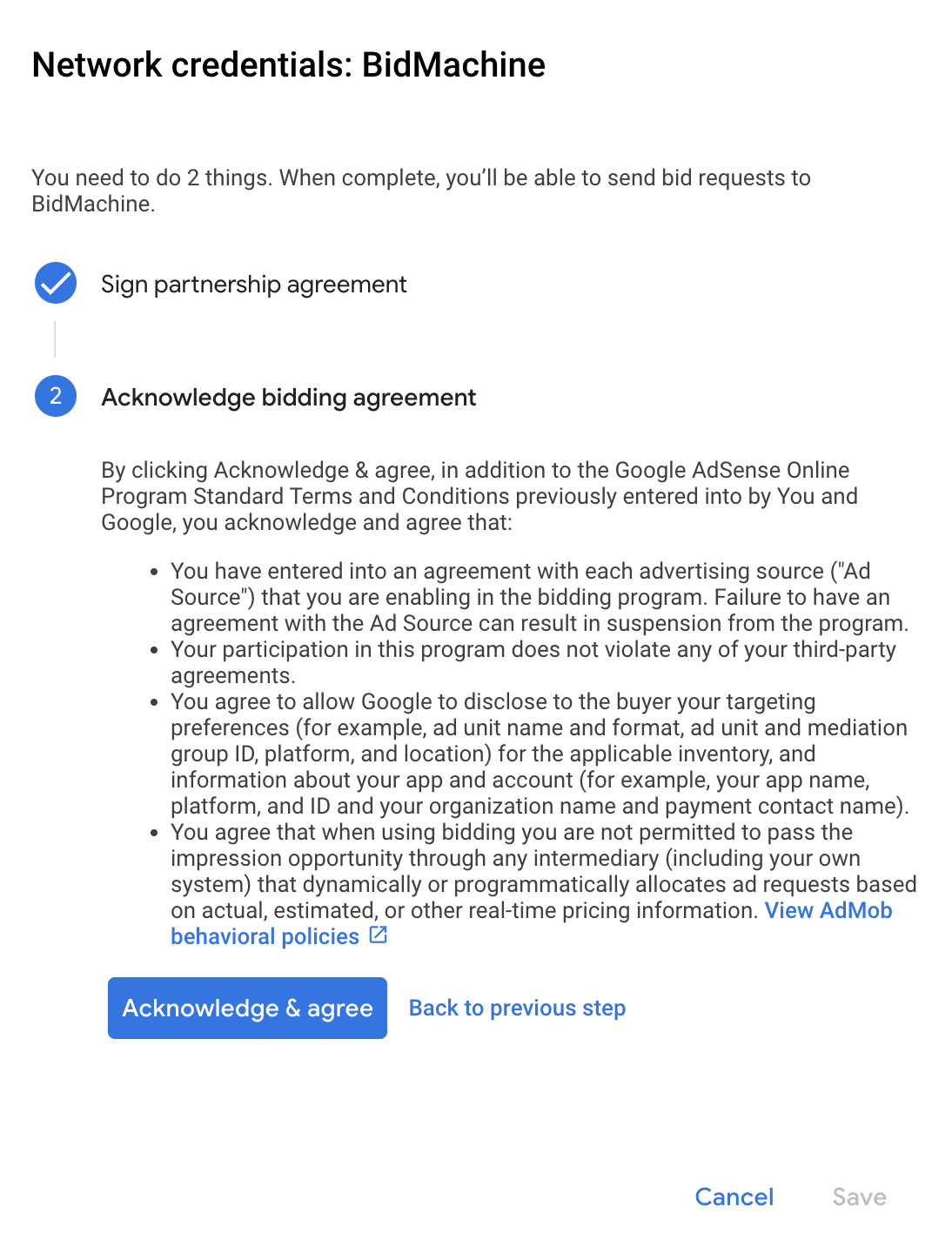 Paso 2: Configura la demanda de BidMachine en la IU de AdMob