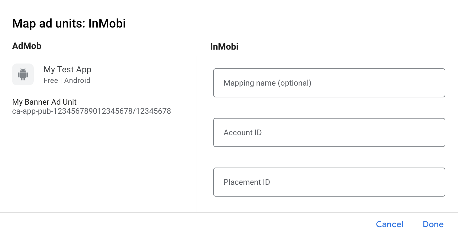 ステップ 2: AdMob の UI で InMobi のデマンドを設定する