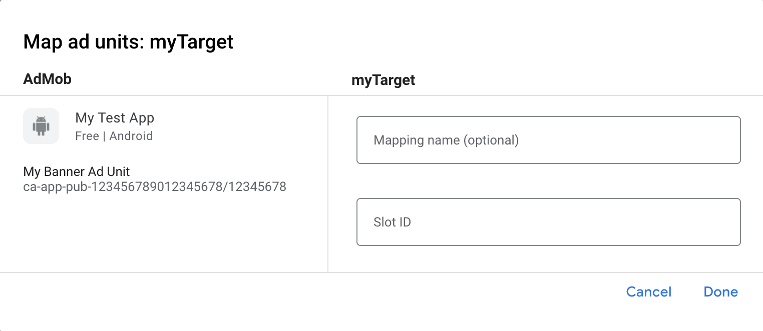 Musisz dodać myTarget do konfiguracji mediacji w przypadku jednostki reklamowej.
