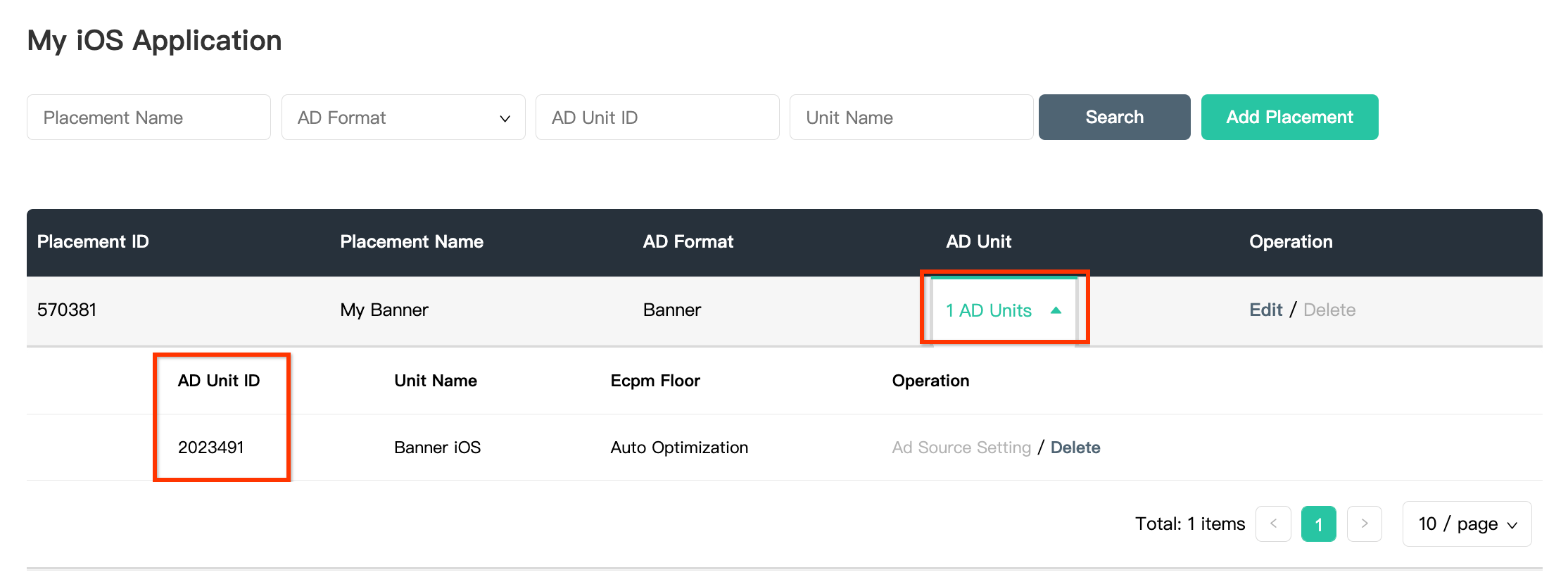 Once your ad placement is created, take note of the Placement ID.