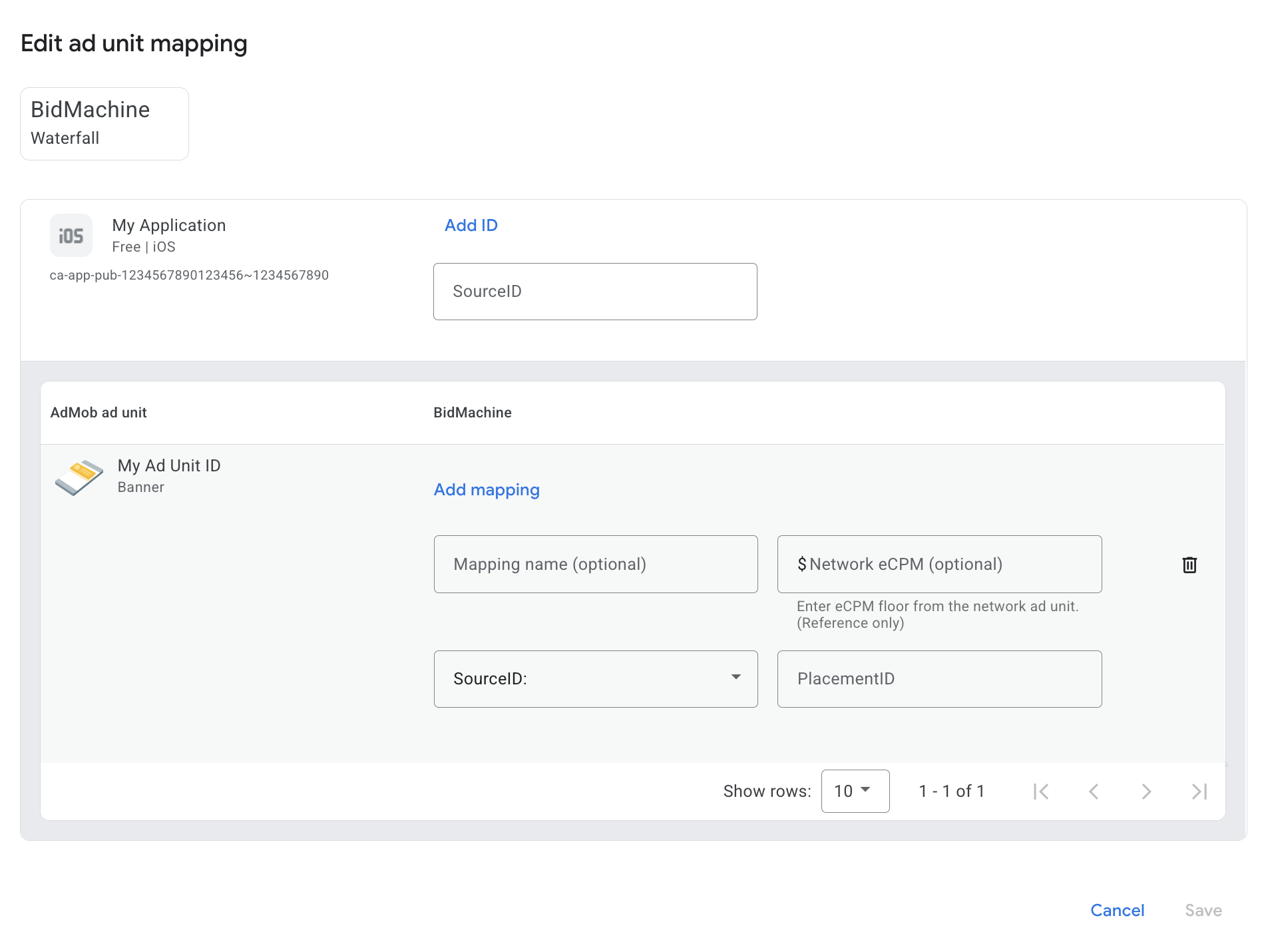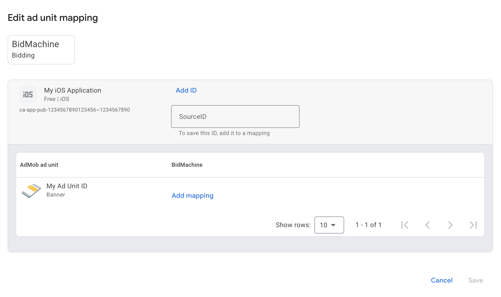 BidMachine에 대한 매핑이 이미 있는 경우 이를 선택할 수 있습니다. 그렇지 않으면 매핑 추가를 클릭합니다.