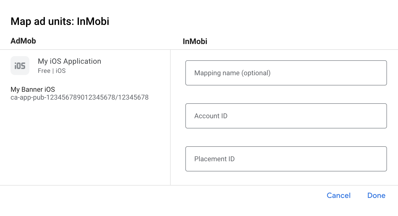 Étape 2 : Configurer la demande InMobi dans l'UI AdMob