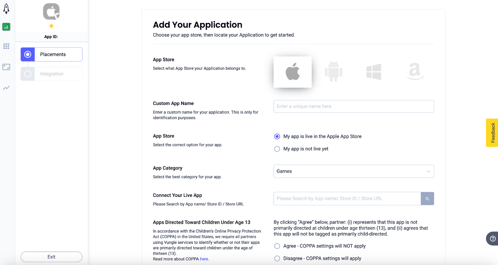 ขั้นตอนที่ 1: ตั้งค่าการกำหนดค่าใน UI ของ Liftoff Monetize
