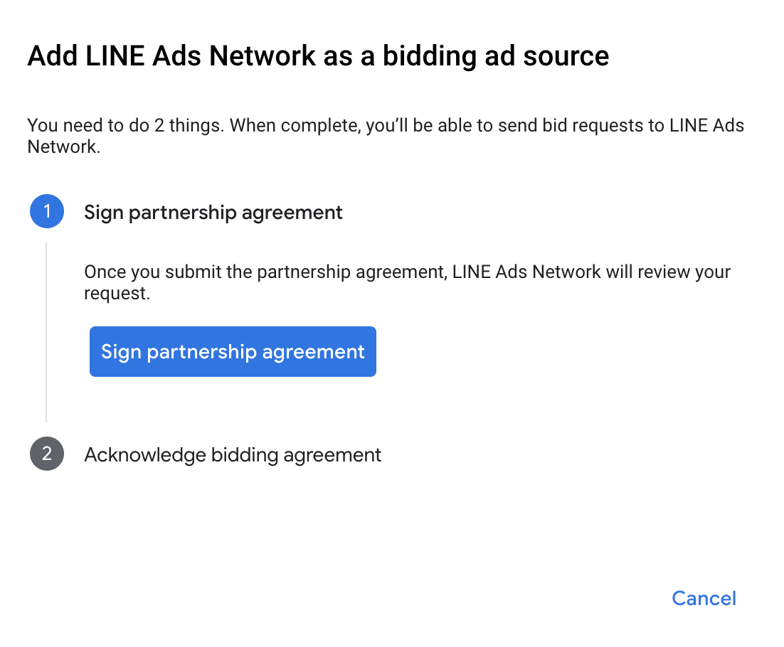 Click How to sign a partnership agreement and set up a bidding partnership with LINE Ads Network.