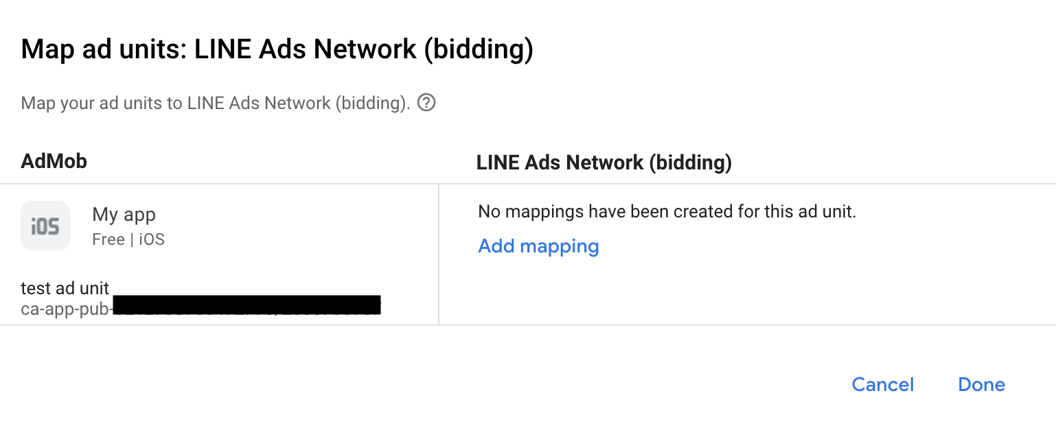 Se hai già una mappatura per LINE Ads Network, puoi selezionarla. In caso contrario, fai clic su Aggiungi mappatura.