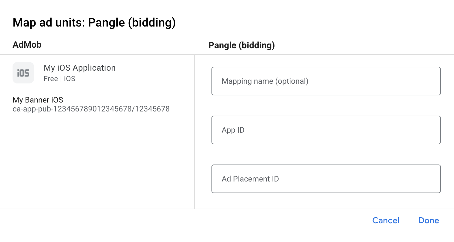 Étape 2 : Configurer la demande Pangle dans l'UI AdMob