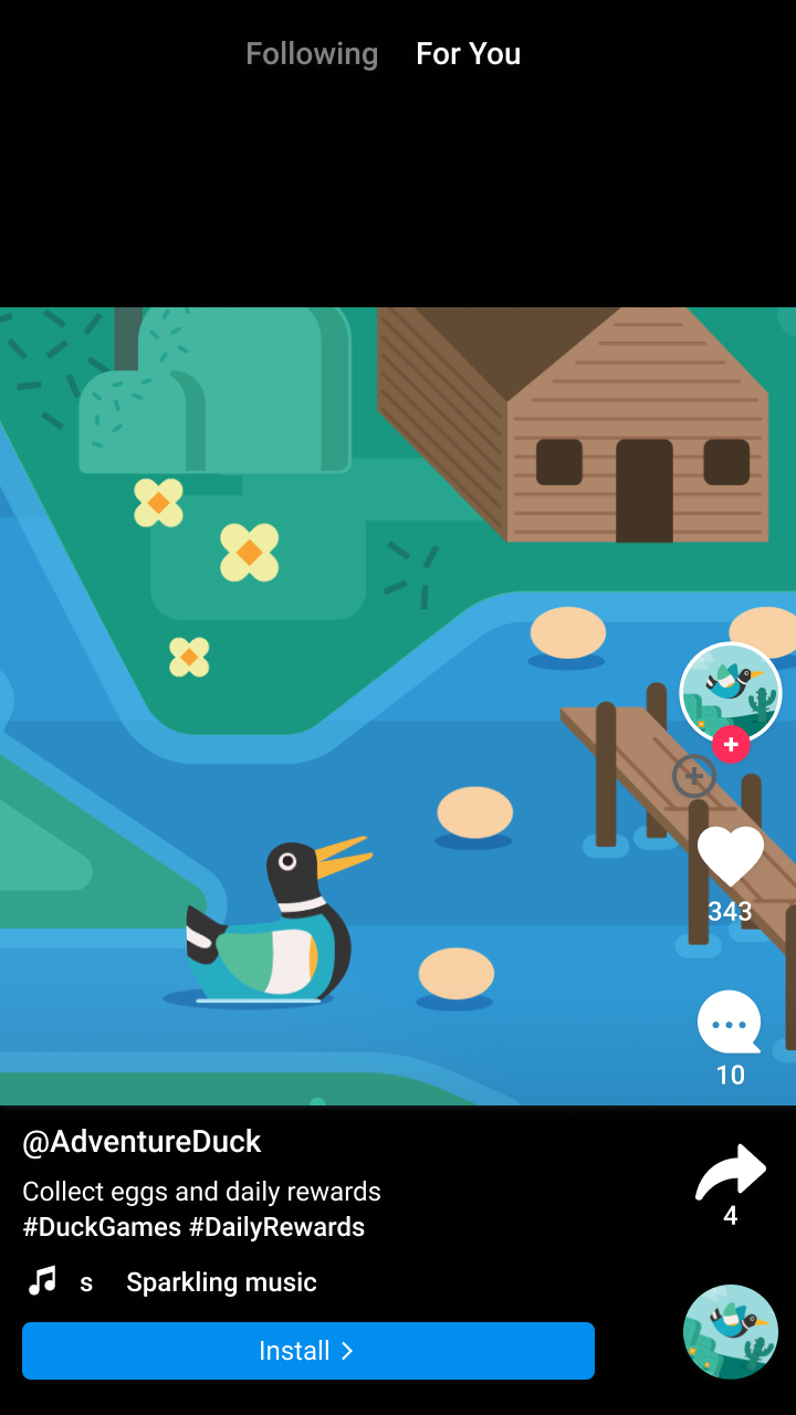 אפשר להשתמש בפורמט של מודעה מותאמת כדי ליצור מודעות בכל גודל, כולל מודעות במסך מלא כמו אלה שפופולריות מאוד באפליקציות של רשתות חברתיות ובידור. מודעות מותאמות במסך מלא יכולות לשפר את ההכנסות ואת שיעור השימור. אפשר לעשות זאת באמצעות התאמת הסגנון של חוויות תוכן קיימות במסך מלא, כמו באפליקציות חברתיות, או באמצעות הצבת מודעות בפידים של סטוריז. כמה דוגמאות למודעות מותאמות למסך מלא: