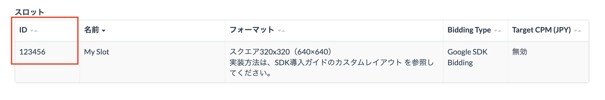 | 102 | com.google.ads.mediation.line | スロット ID がないか、無効です。 |
