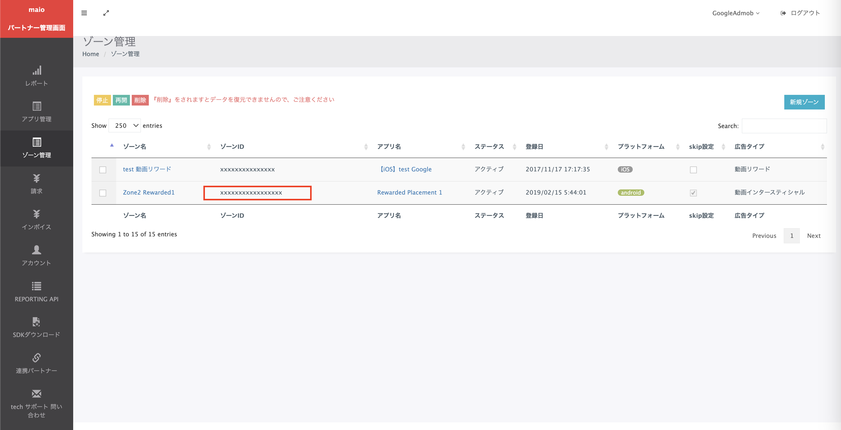 Trên trang Zone Management (Quản lý vùng), hãy ghi lại Zone ID (Mã vùng). Bạn cũng cần thiết lập đơn vị quảng cáo AdMob trong phần tiếp theo.