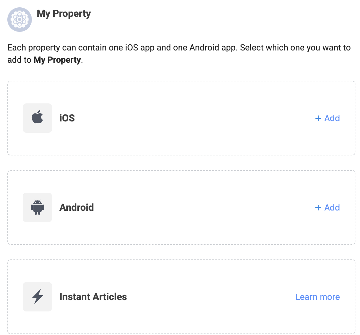 Depois de preencher as informações necessárias, você vai precisar criar uma propriedade para seu app. Insira o nome desejado e clique em Próxima.