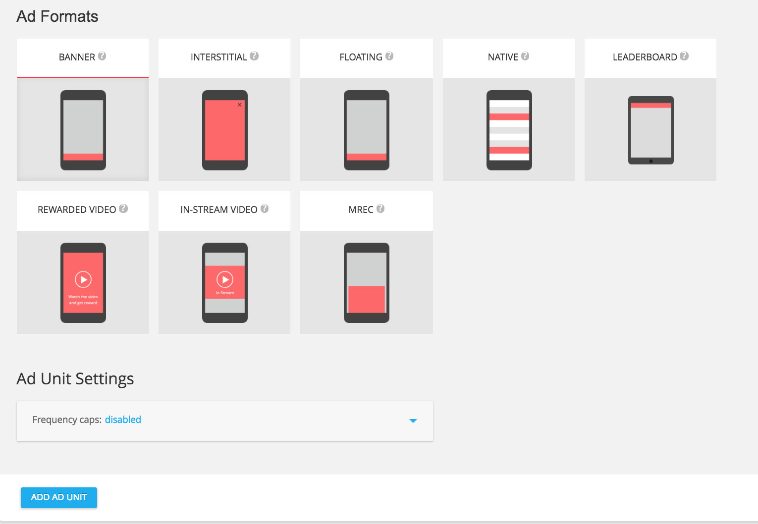 Chọn BANNER trong số các định dạng quảng cáo có sẵn, rồi nhấp vào nút THÊM ĐƠN VỊ QUẢNG CÁO.