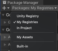 Name: OpenUPM URL: https://package.openupm.com Scopes: com.googleUnity のメニュー オプション [Window](ウィンドウ)> [Package Manager] を選択して、Package Manager メニューを開きます。