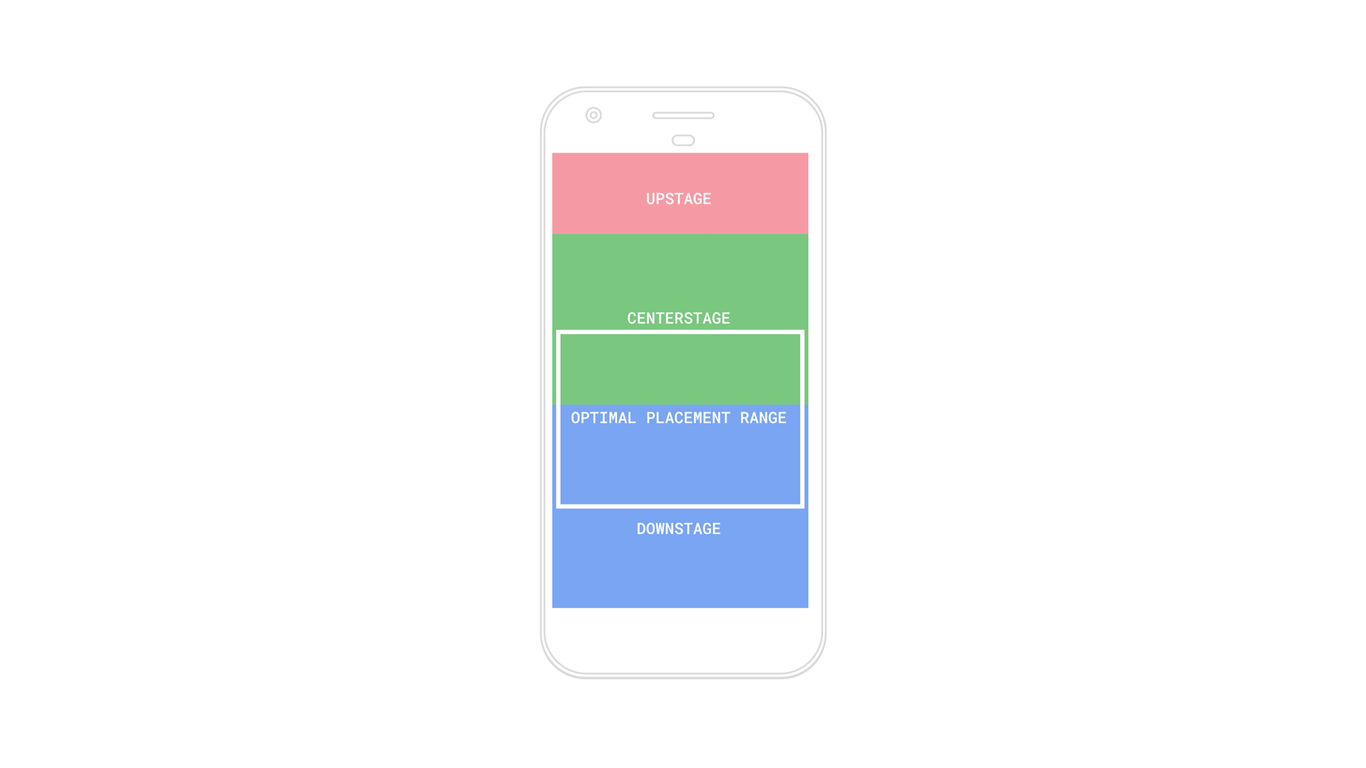 Berücksichtigen Sie bei der Erstellung Ihrer Websitevariante, wie wichtig Tiefendaten sind. Überlegen Sie, wie Nutzer Ihre Inhalte sehen und ob sie darauf zugreifen können. Du kannst dir die Szene in drei verschiedenen Regionen vorstellen: Downstage, Upstage und Mittelbühne.