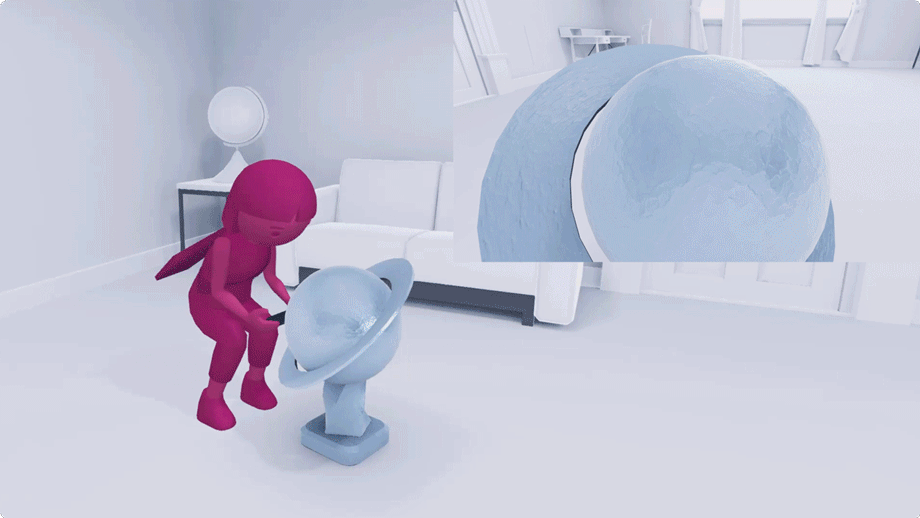 Para evitar colisões de profundidade, quando um objeto virtual parece cruzar um objeto real, considere os tamanhos de sala razoáveis e os vários ambientes em que os usuários podem usar o app.