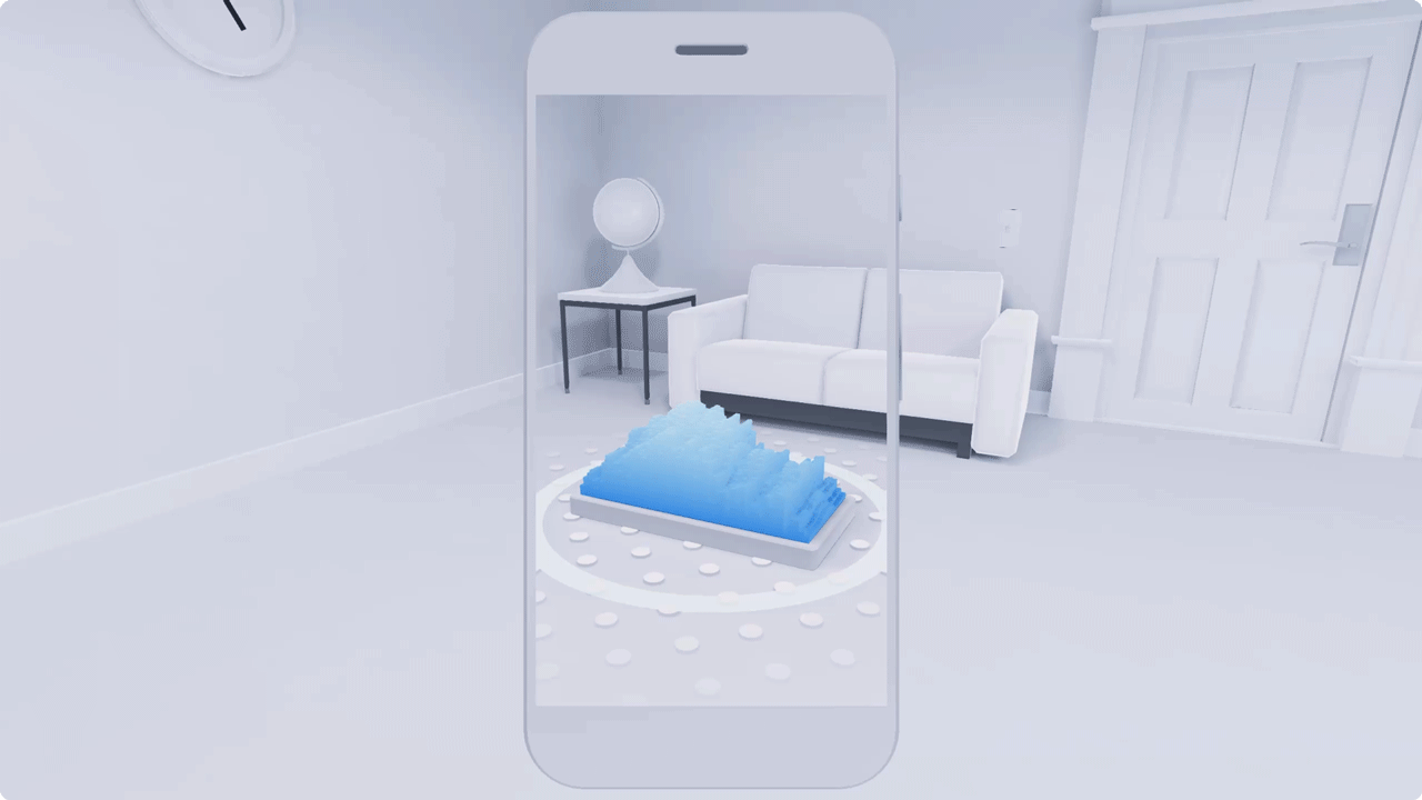 Se la tua esperienza richiede un'esplorazione, ricorda agli utenti che possono spostarsi. In questi casi, offri agli utenti un obiettivo che può essere completato solo spostandosi. Posiziona un oggetto virtuale sul bordo dello schermo per incoraggiare gli spettatori a muoversi verso di esso.