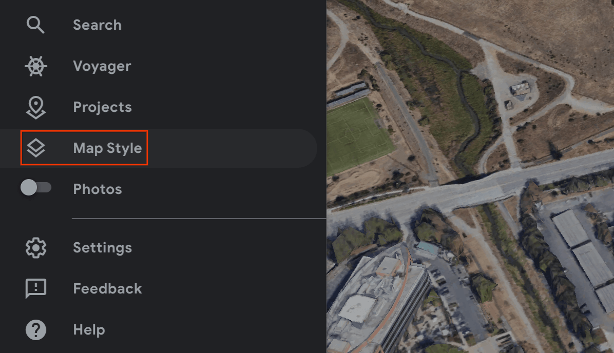 Définissez Satellite comme Type de carte et décochez la case Vue du globe en bas à gauche de l'écran.