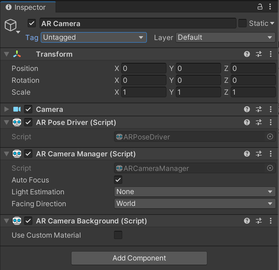 ARSessionOriginвашей сцены. - Добавьте компонент
