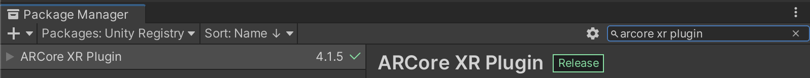 3. Na pasku wyszukiwania wpisz „ARCore XR plugin”.