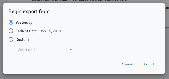 لتصدير البيانات من تاريخ سابق، يمكنك اختيار إضافة البيانات السابقة إلى البيانات السابقة. لإجراء ذلك، اتّبع الخطوات التالية: