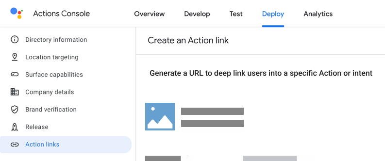 - Desenvolver: o ambiente de desenvolvimento integrado visual baseado na Web, o Actions Builder.