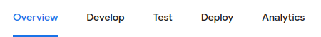 Actions konsolunun Geliştir, Dağıt ve Analytics sekmeleri üç ana alandan oluşur: ana gezinme menüsü, sol menü ve düzenleme alanı. Aşağıdaki bölümlerde bu alanlar daha ayrıntılı olarak açıklanmaktadır.