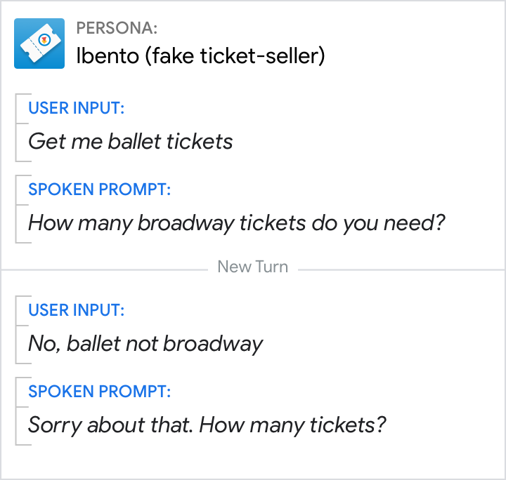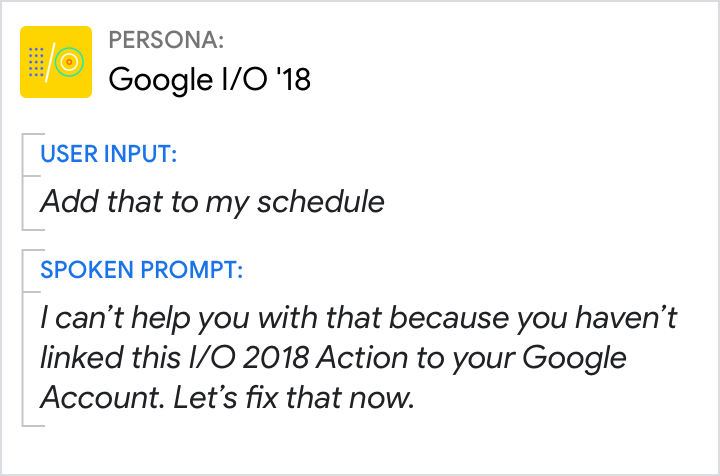 「沒有相符結果」提示非常適合用於指出使用者角色無法瞭解或解讀背景資訊的回應。但請避免過度使用。針對系統錯誤,請避免在「不是」職位時說「抱歉」。