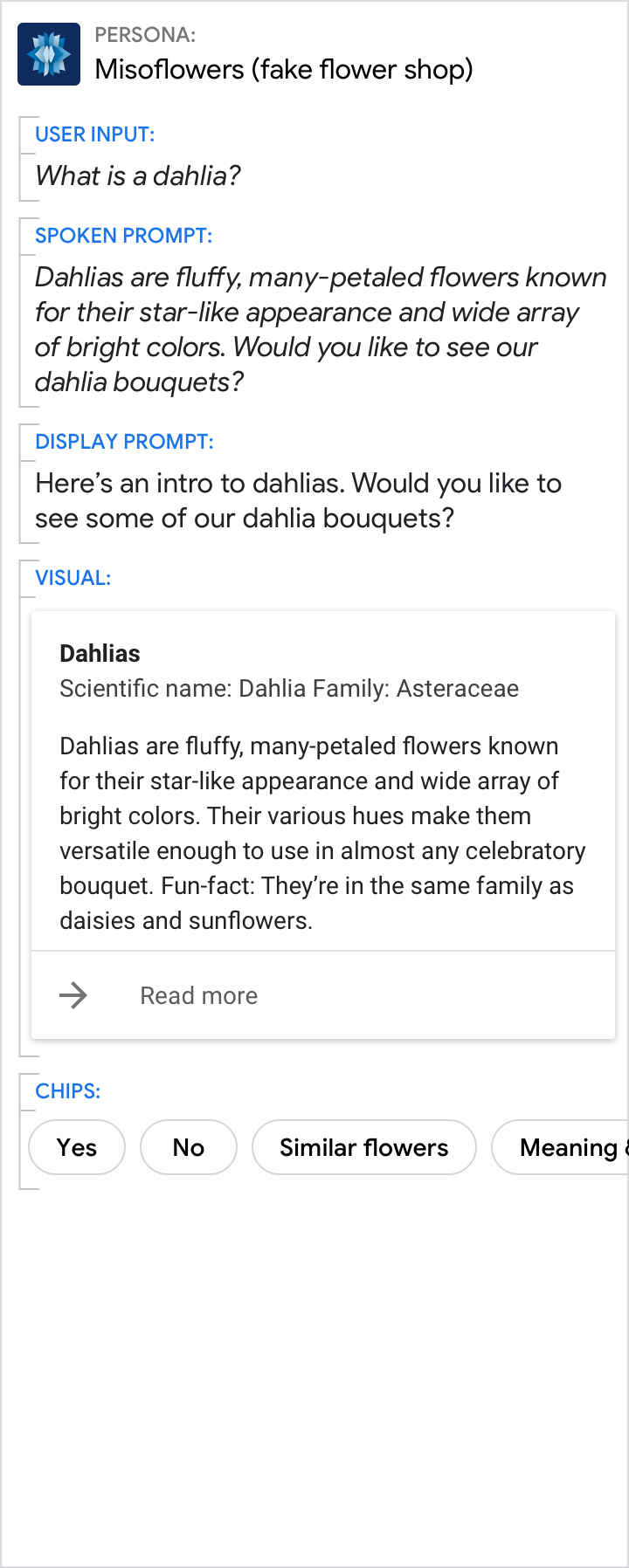 Użyj komunikatów głosowych i wyświetlanych, aby udzielić odpowiedzi na zadane pytanie użytkownika (w tym przykładzie o 11:30). Aby uzyskać powiązane szczegóły, użyj treści wizualnych.