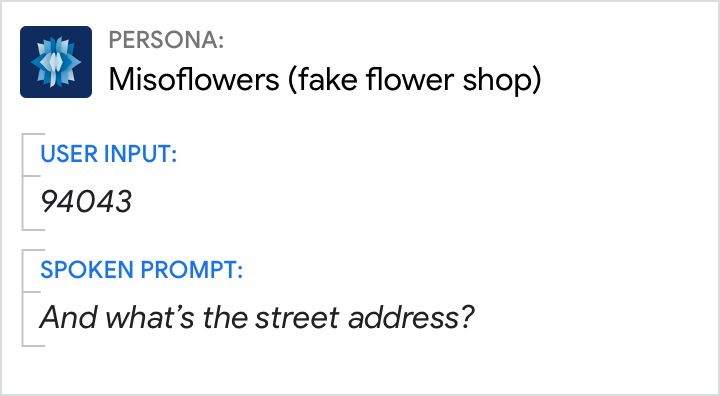 Nutzen Sie die meiste Zeit nicht, um die Eingabe des Nutzers für sich zu bestätigen, sondern um die Parameter, die gesagt oder angedeutet wurden. Nutzer benötigen diesen Kontext, um die Antwort zu verstehen.