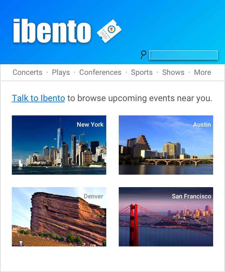 Deep link dengan intent yang ditetapkan, seperti "Beli tiket", akan menghasilkan salam singkat yang langsung memperkenalkan fungsi yang diminta pengguna.