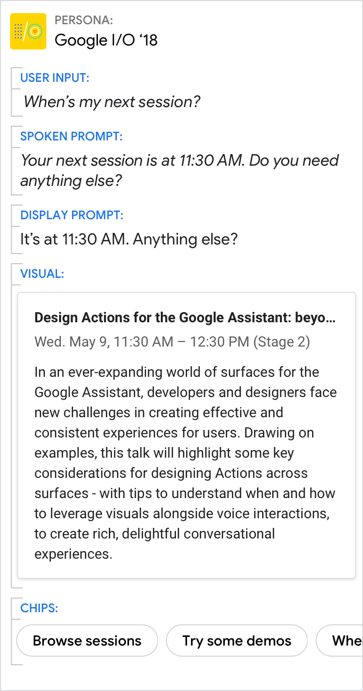 Ten en cuenta que los parámetros "exit", "cancel", "stop", "nevermind" y "goodbye" son compatibles de forma predeterminada, de modo que, si los usuarios los dicen, tu acción finalizará. Consulta Salidas de la app para obtener más información.