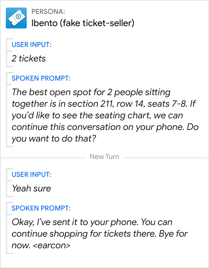 โปรดทราบว่าระบบจะรองรับ "ออก" "ยกเลิก" "หยุด" "ไม่เคย" และ "ลาก่อน" ตามค่าเริ่มต้น ดังนั้นหากผู้ใช้พูด ระบบจะสิ้นสุดการดําเนินการของคุณ ดูข้อมูลเพิ่มเติมได้ที่การออกจากแอป