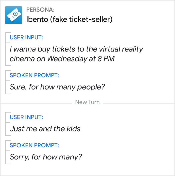 Người dùng sẽ gặp liên tiếp không quá 3 lỗi Không có thông tin đầu vào hoặc Không khớp, sau đó Hành động của bạn sẽ phát lời nhắc lỗi tối đa phù hợp và thoát khỏi cuộc trò chuyện.