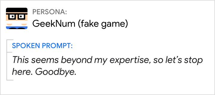 Gli utenti non devono visualizzare più di tre errori di tipo Nessun input o Nessuna corrispondenza di seguito. Trascorso questo periodo, l'azione deve riprodurre la richiesta di errore massima appropriata e uscire dalla conversazione.